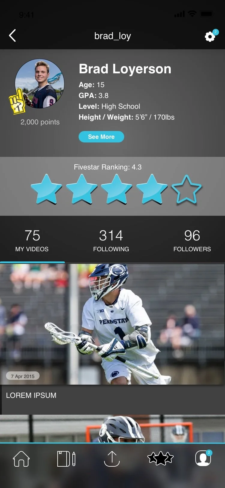 Task: The objective was to develop an app, "5 Star", where athletes could upload videos of their performances and receive ratings. This platform would allow athletes to gain visibility and provide coaches and scouts with a centralized hub to discover and assess new talent based on real-time performance videos.
